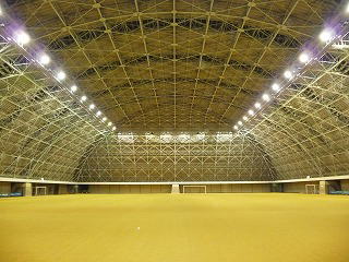 ドラゴンハットは、屋根に5列のトップライト(採光)を設け自然光を採り入れることにより、グラウンドの照度を平均500ルクス以上を確保しております。(天候により暗く感じる場合もあります)